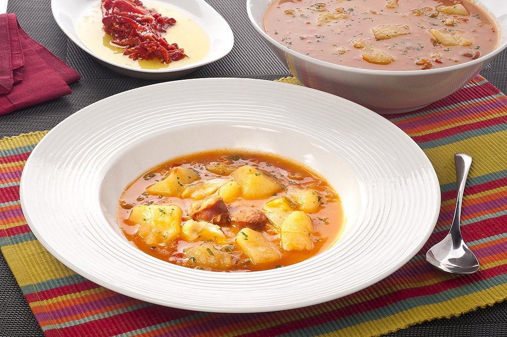 Bruno cocinará una gran receta para calentar el cuerpo en los días de frío. Una cazuela de patatas con bacalao y con chorizo es un plato irresistible para la gran mayoría de las personas. Hoy además, Bruno saldrá a la calle a preguntar a la gente si les gusta el picante y si conocen las alegrías riojanas.