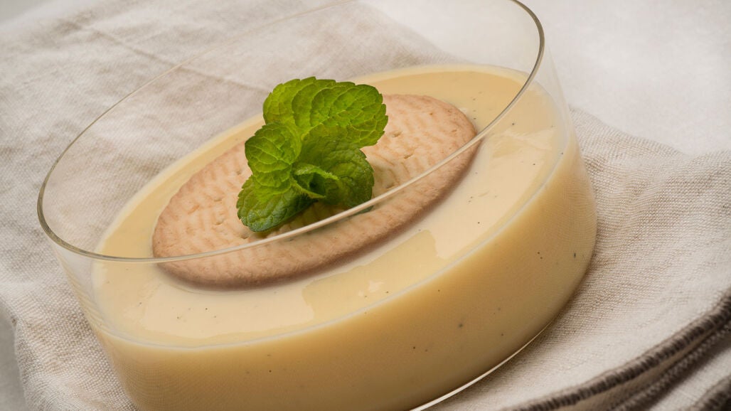 Servir natillas en copas con la galleta troceada