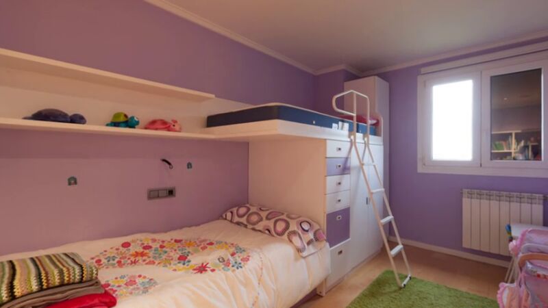 En Decogarden hemos personalizado el dormitorio de Anuska,la más pequeña de la casa. A la hora de decorar habitaciones infantiles nos permitimos más licencias y nos atrevemos a mezclar colores, y también estampados. Con listones de madera de pino, un poco de pintura y la técnica del decopatch hemos revestido la pared principal. Y para la cama, una pequeña cabaña cubierta de bandas de tela. ¡Ha quedado espectacular!