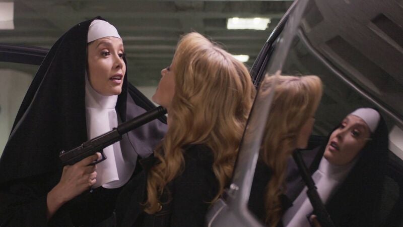 Para acercarse a ella sin ser descubierta, se disfraza de monja y la sorprende en un parking, donde la apunta con un arma. Quiere acabar con su vida. Pero Leona no se achanta y le planta cara, recordándole todos sus errores: su alianza con Ramsés, el negocio de trata de mujeres y su traición a Gael.